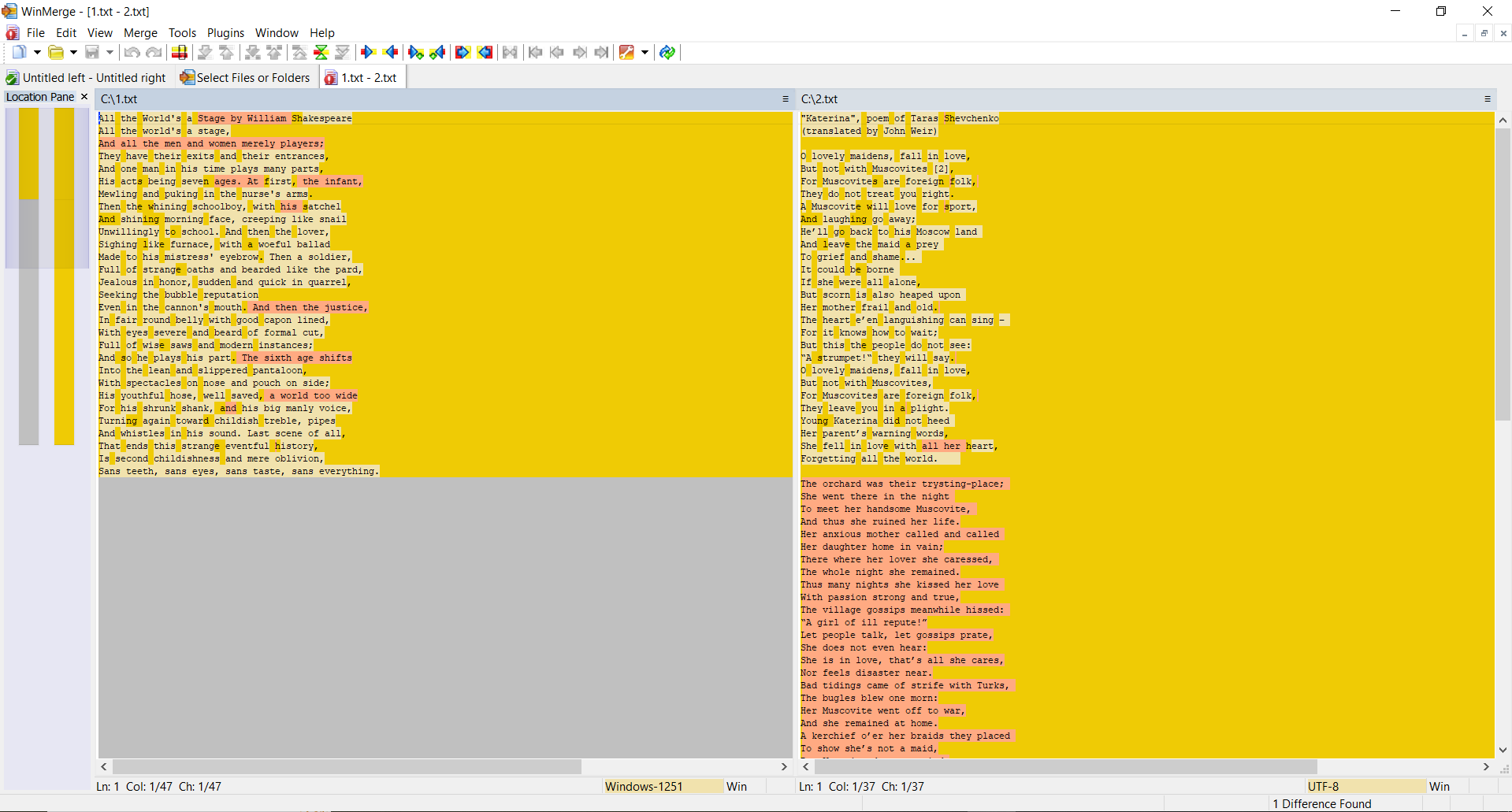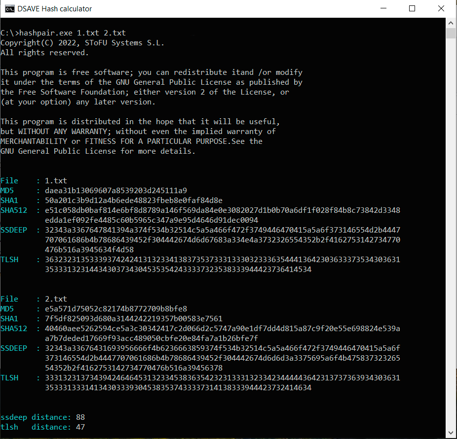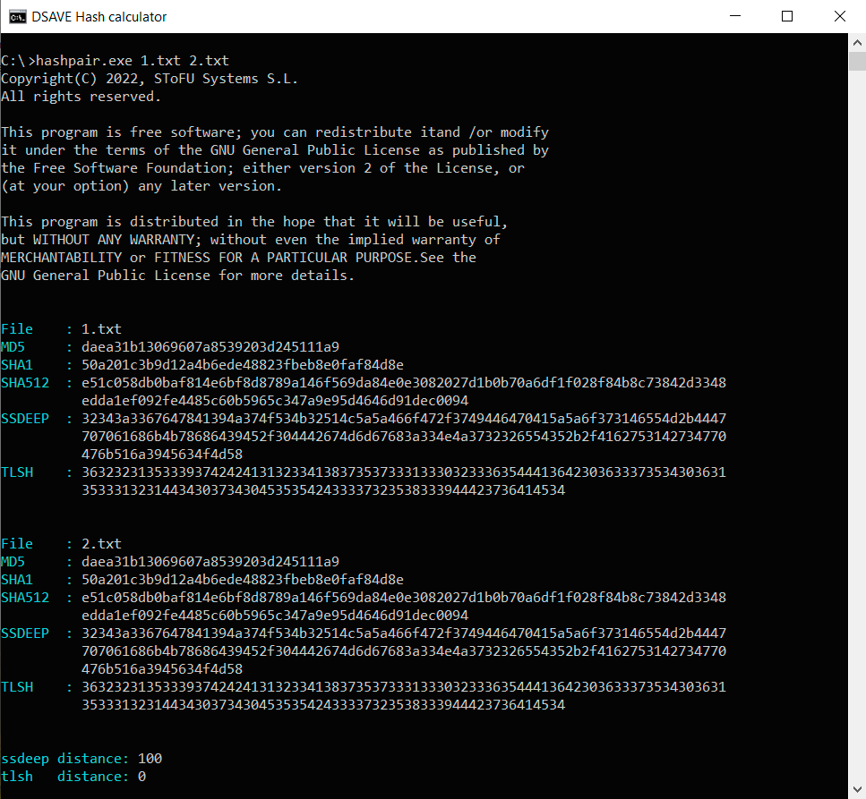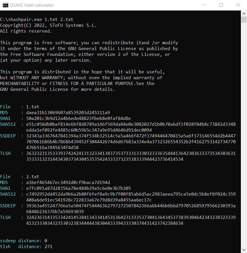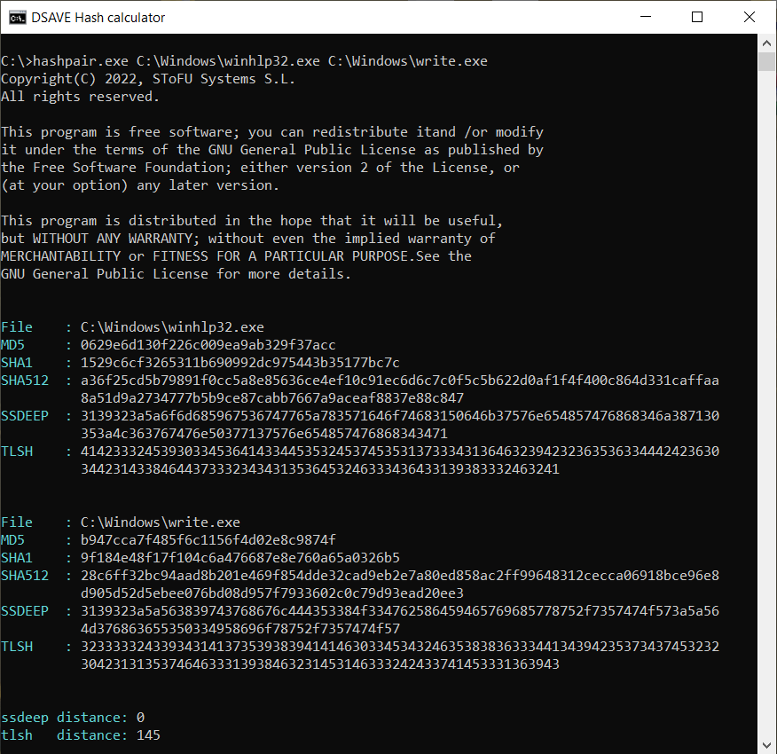 The thing is that, as we said above, the TLSH algorithm takes into account frequencies. Despite the fact that the texts are different, nevertheless they are written in the same language, use the same alphabet and have a number of the same words. This feature of this hashing algorithm helps to detect modifications of malicious files.